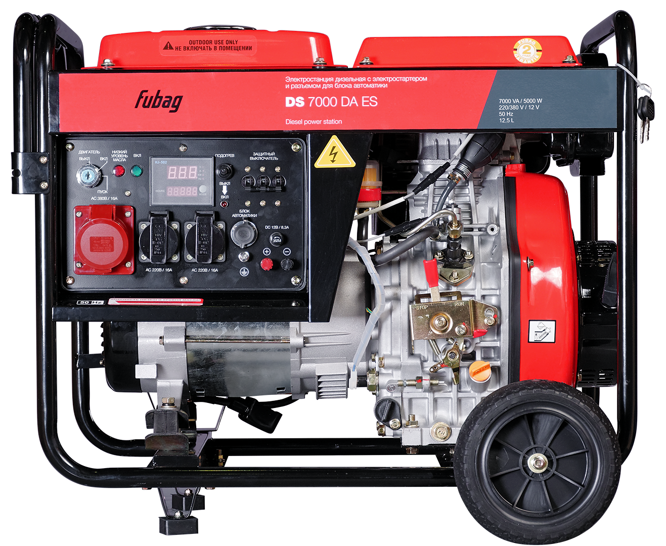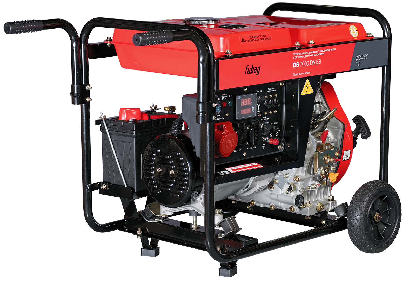 Дизель генератор FUBAG DS 7000 DA ES с электростартером и коннектором автоматики для энергоснабжения как однофазных, так и трехфазных потребителей.