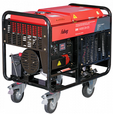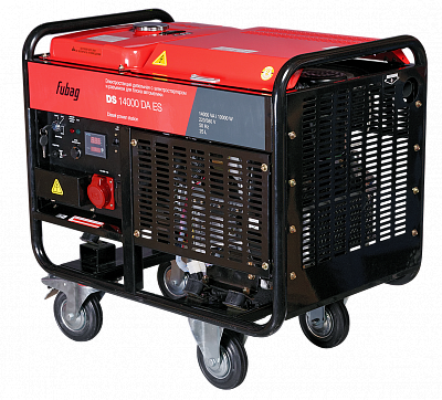 Дизель генератор FUBAG DS 1400 DA ES с электростартером и коннектором автоматики для энергоснабжения как однофазных, так и трехфазных потребителей. Основные характеристики: Мощность номинальная - 10 кВт Мощность максимальная - 14 кВт Напряжение - 380/220 В Вес - 174 кг Объем бака - 25 литров