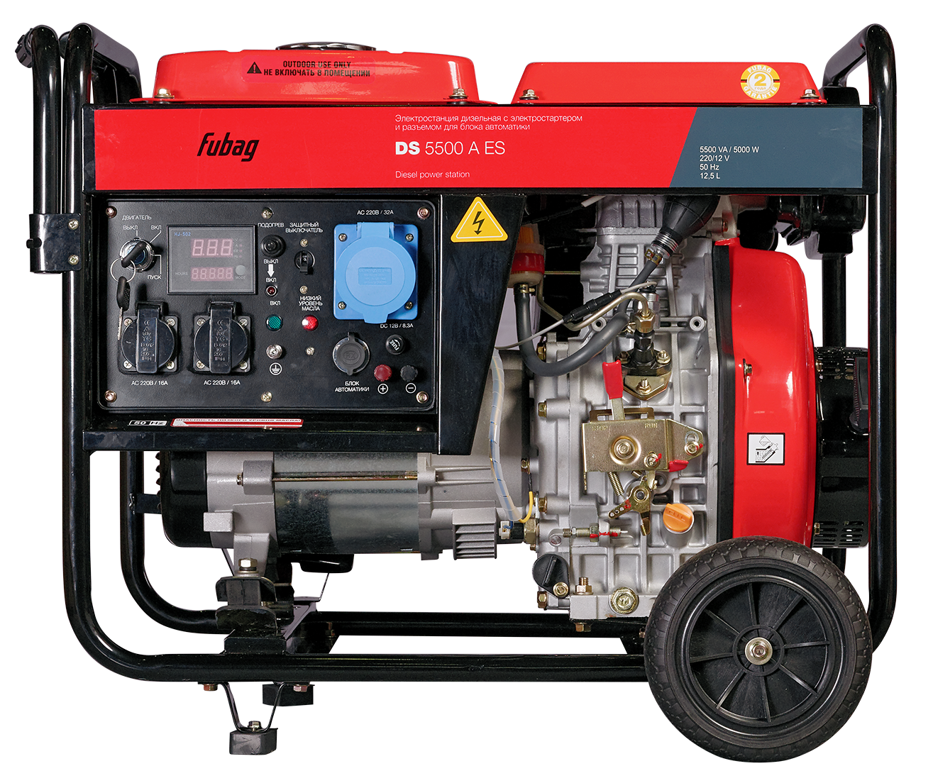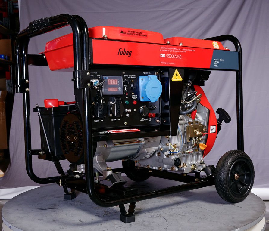Дизель генератор FUBAG DS 5500 A ES с электростартером и коннектором автоматики используется в качестве резервного источника электроэнергии. Основные характеристики: Мощность номинальная - 5 кВт Мощность максимальная - 5,5 кВт Напряжение - 220 В Вес - 104 кг Объем бака - 12,5 литра Преимущества: