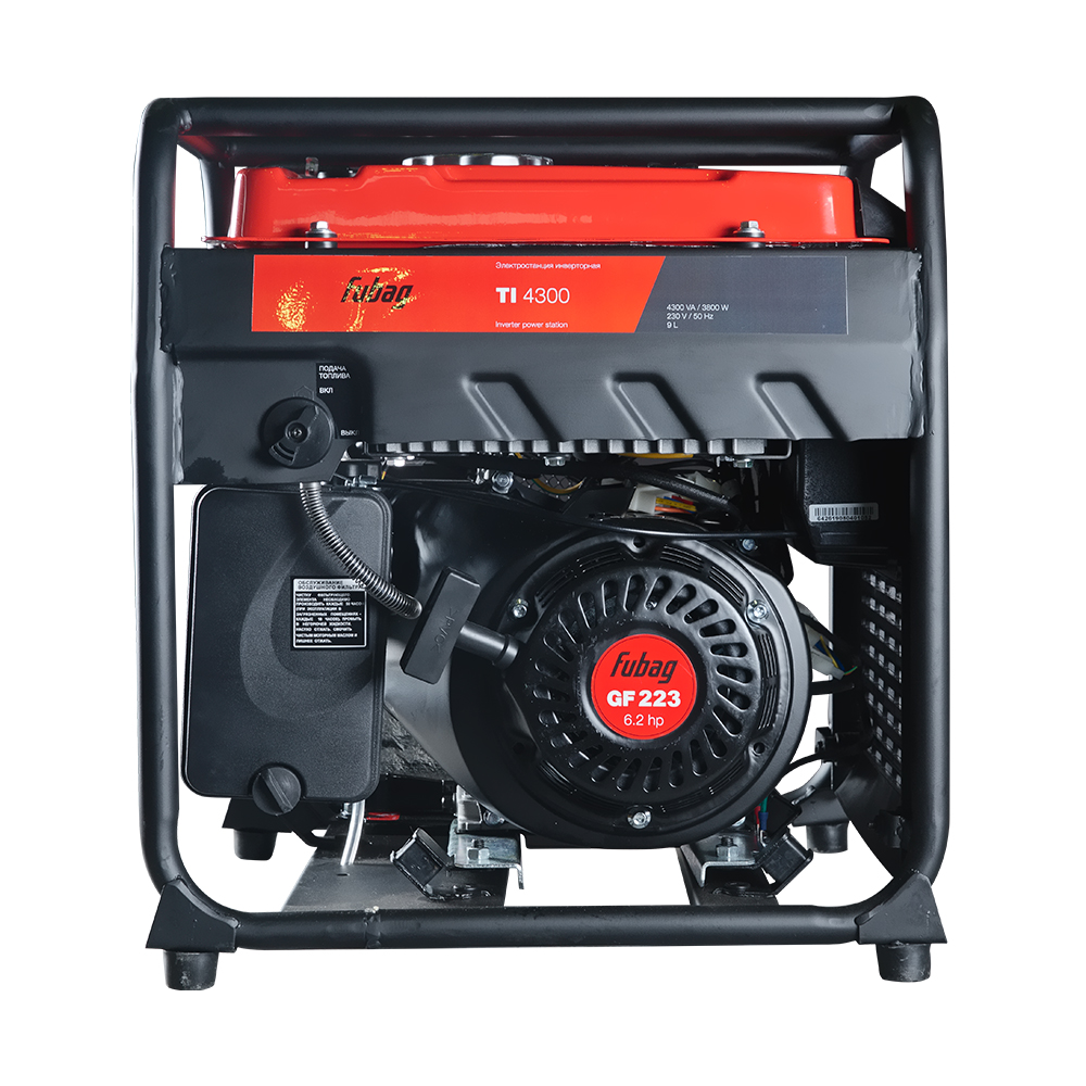 Инверторная электростанция FUBAG TI 4300 на открытой раме мощностью 3,8 кВт хорошо подойдёт для организации аварийного электроснабжения. Модель оснащена увеличенным глушителем, значительно снижающим уровень шума. Вместительный бак объемом 9 л позволяет станции работать до 5 часов без дозаправки при 75% нагрузки. Вид топлива - бензин АИ-92.